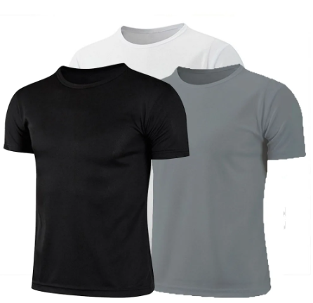 Nesse kit vc adquiri 3 camisas: 1 na cor preto, 1 na cor branca e 1 na cor cinza.